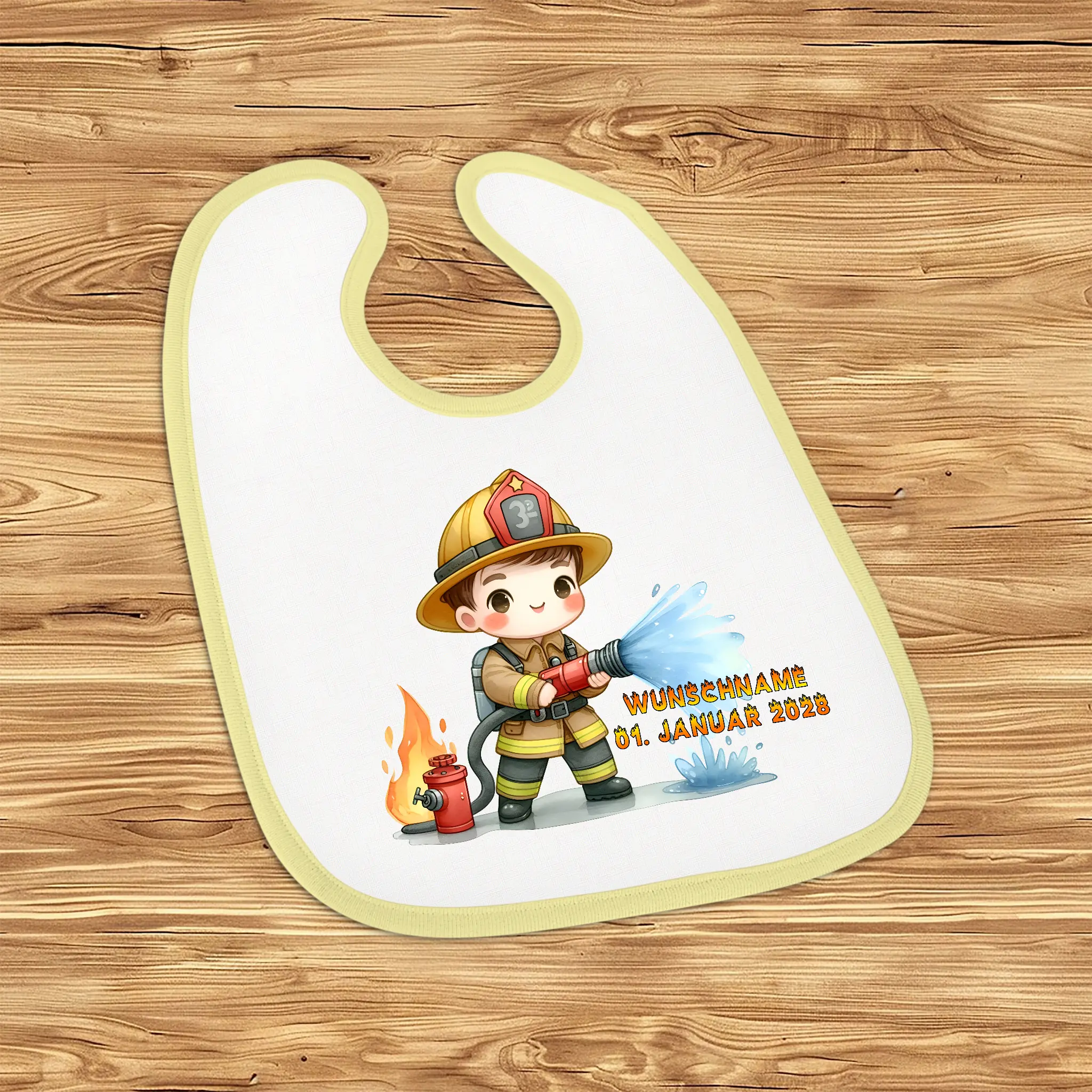 - Motiv / Thema des Lätzchens mit praktischem Klettverschluss: Babylätzchen Feuerwehr Junge mit Wunschname und Datum