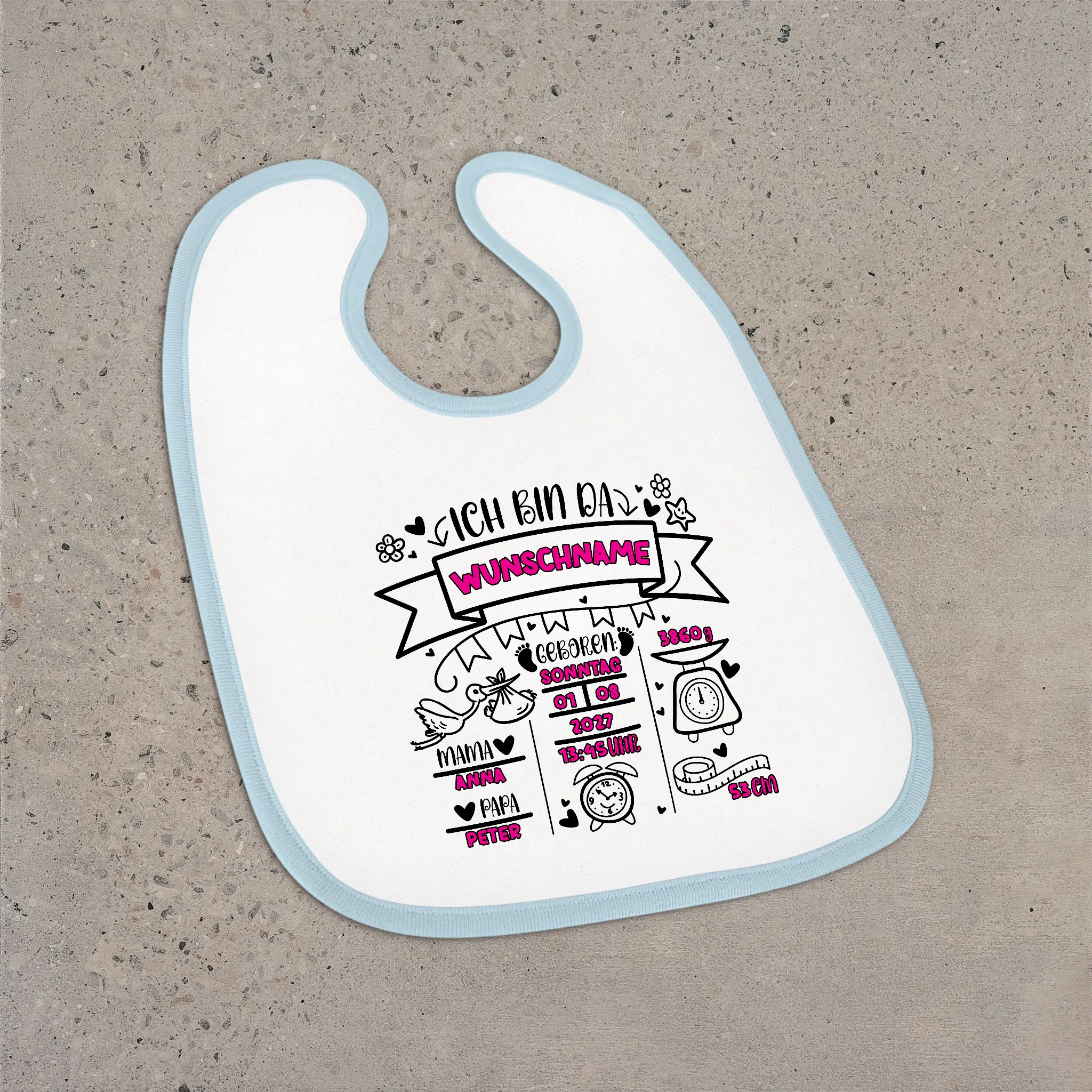 Dieses beliebte Mitbringsel Babylätzchen Mädchen ist in einer Auswahl von 4 verschiedenen Saumfarben erhältlich und ist mit einem praktischem Klettverschluss. Das Lätzchen ist nicht nur ein super funktioneller Gebrauchsgegenstand für den Nachwuchs, sondern auch ein echter Blickfang, der am Esstisch eine ganz besondere Note verleiht.