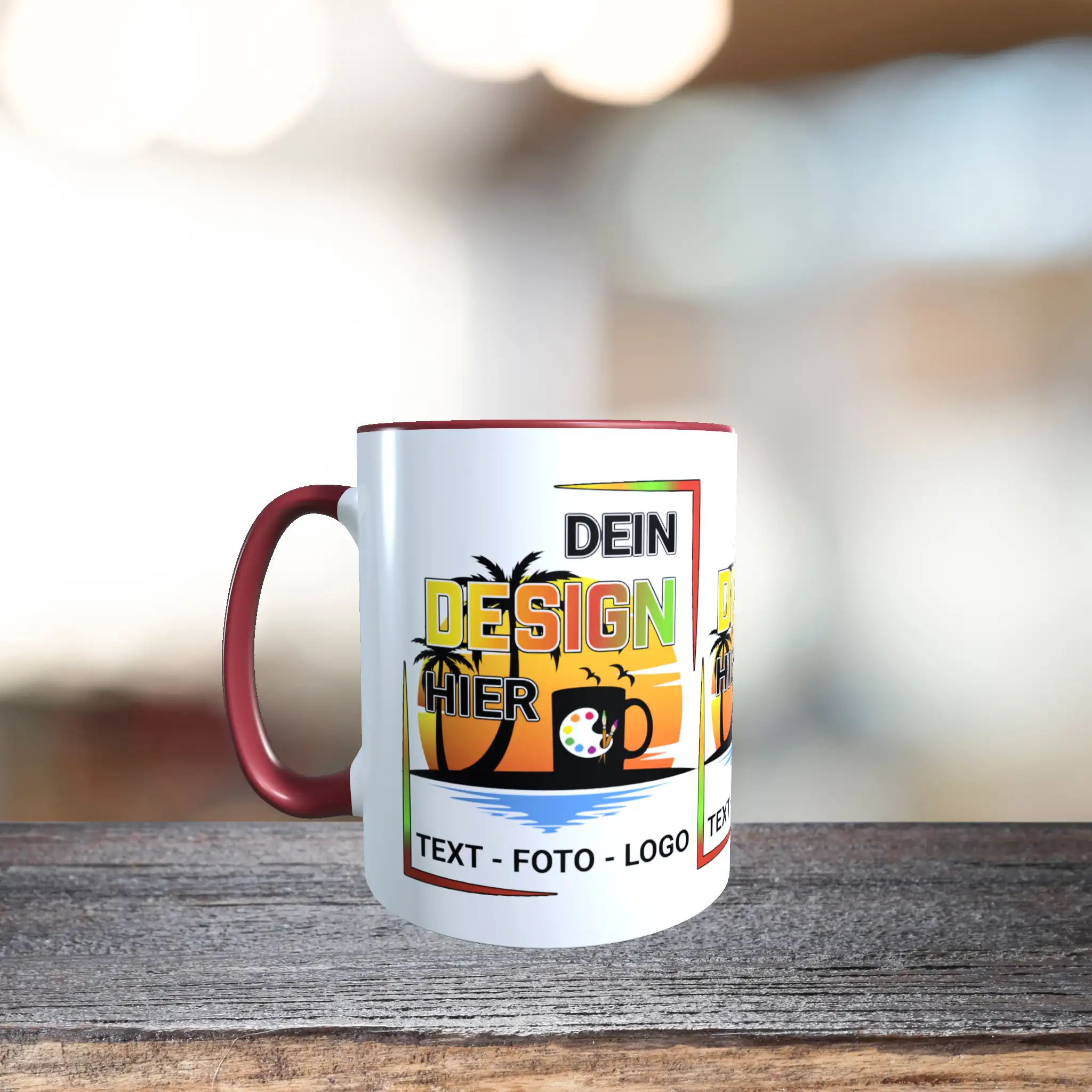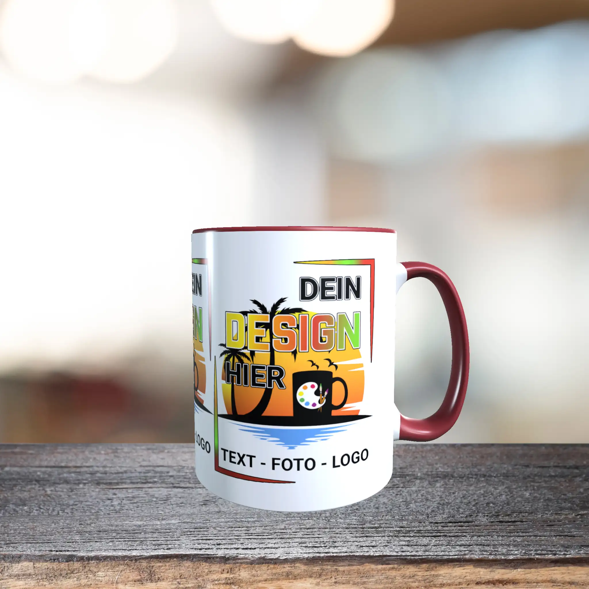 - Motiv / Thema der Tasse: Bordeauxrote Tasse gestalten