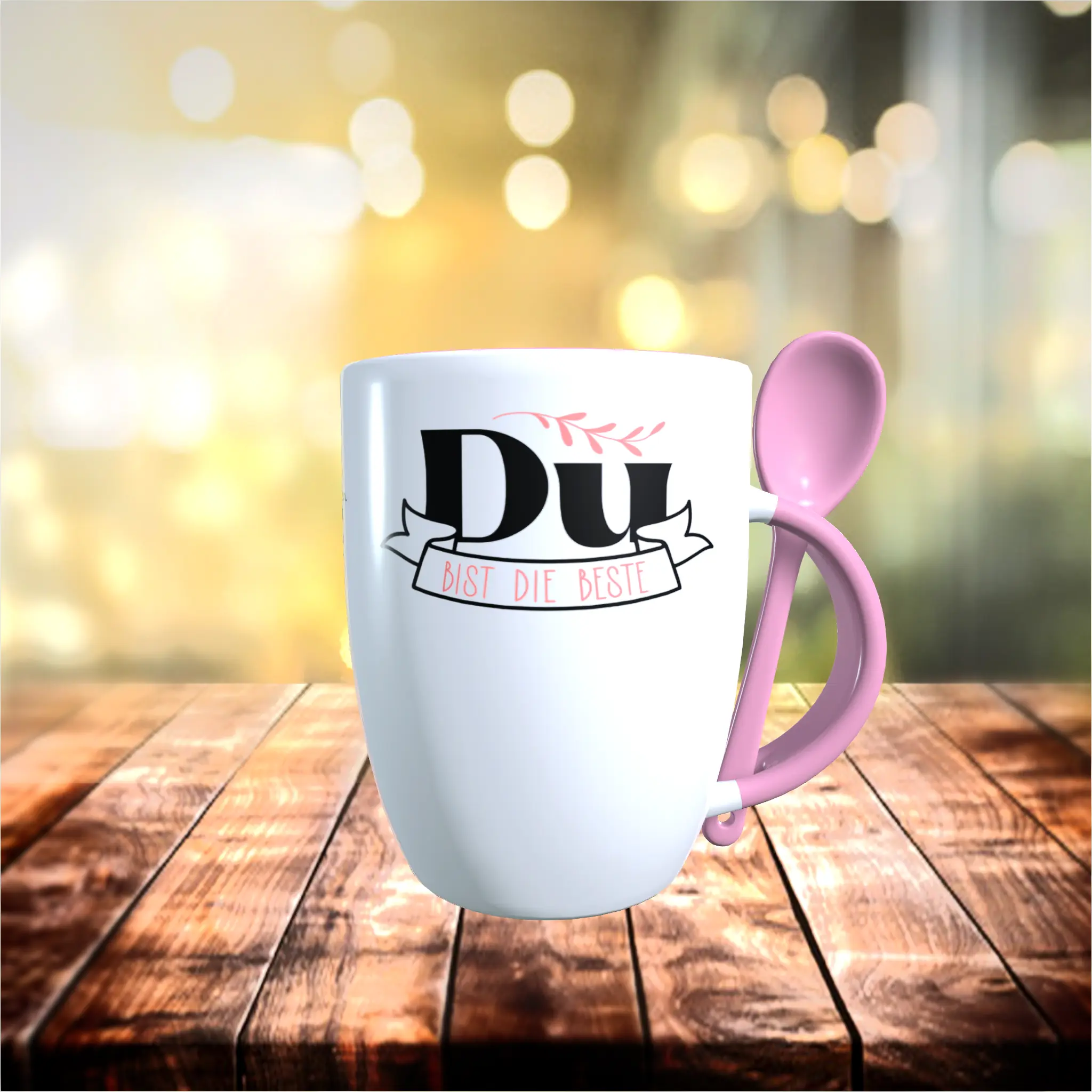 - Motiv / Thema der Keramiktasse: Du bist die Beste Tasse mit Löffel