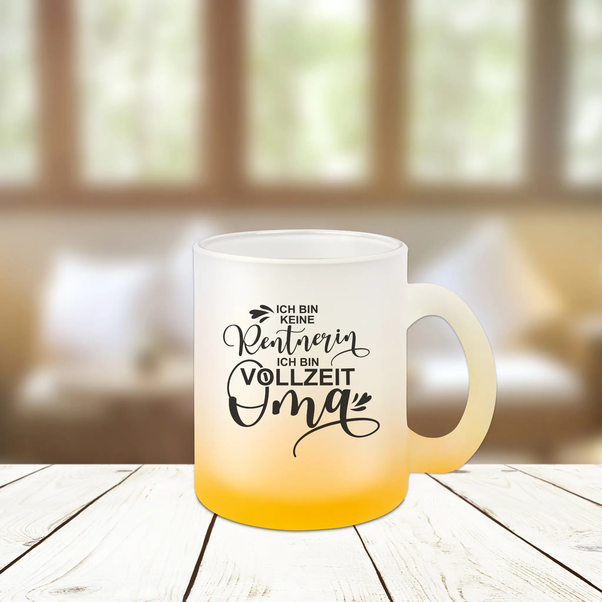Genieße Deinen Glühwein, Lieblingskaffee, eine heiße Schokolade oder einen Tee aus unserer stilvollen Glastasse Oma Ich bin keine Rentnerin ich bin Vollzeit Oma, die in einer Auswahl von 5 stimmungsvollen Farben mit Farbverlauf erhältlich ist. Unsere Tasse ist nicht nur ein super funktioneller Gebrauchsgegenstand für Deine täglichen Getränke, sondern auch ein echter Blickfang, der jedem Tisch oder auch dem Schreibtisch am Arbeitsplatz eine ganz besondere Note verleiht.