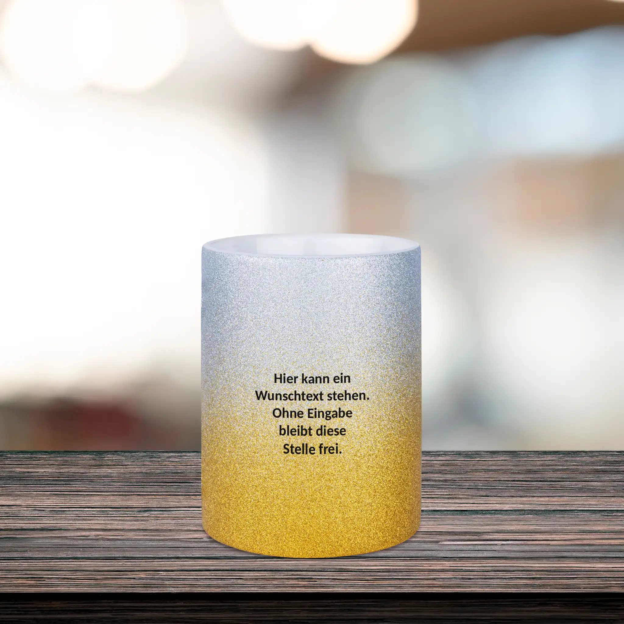 Zusätzlich hast Du bei dieser Glitzertasse Lehrer die Möglichkeit, einen optionalen Wunschtext hinzuzufügen, um die Tasse noch individueller zu gestalten. So wird sie zu einem ganz persönlichen Geschenk, das von Herzen kommt und garantiert für Freude sorgt. Lass Deiner Kreativität freien Lauf und gestalte diese Tasse ganz nach Deinen Vorstellungen. Ohne Angabe eines Wunschtextes bleibt dieser Bereich natürlich frei.