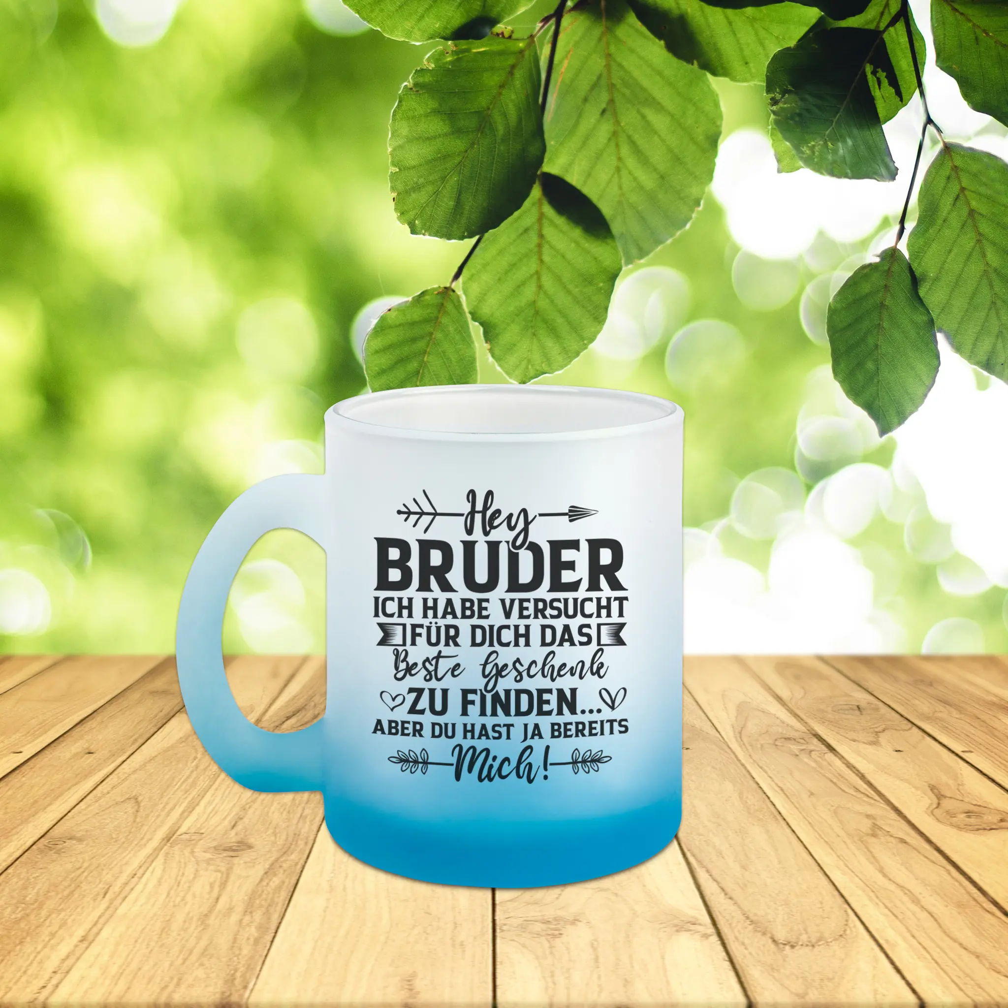 - Motiv / Thema der satinierten Glastasse: Bruder Tasse