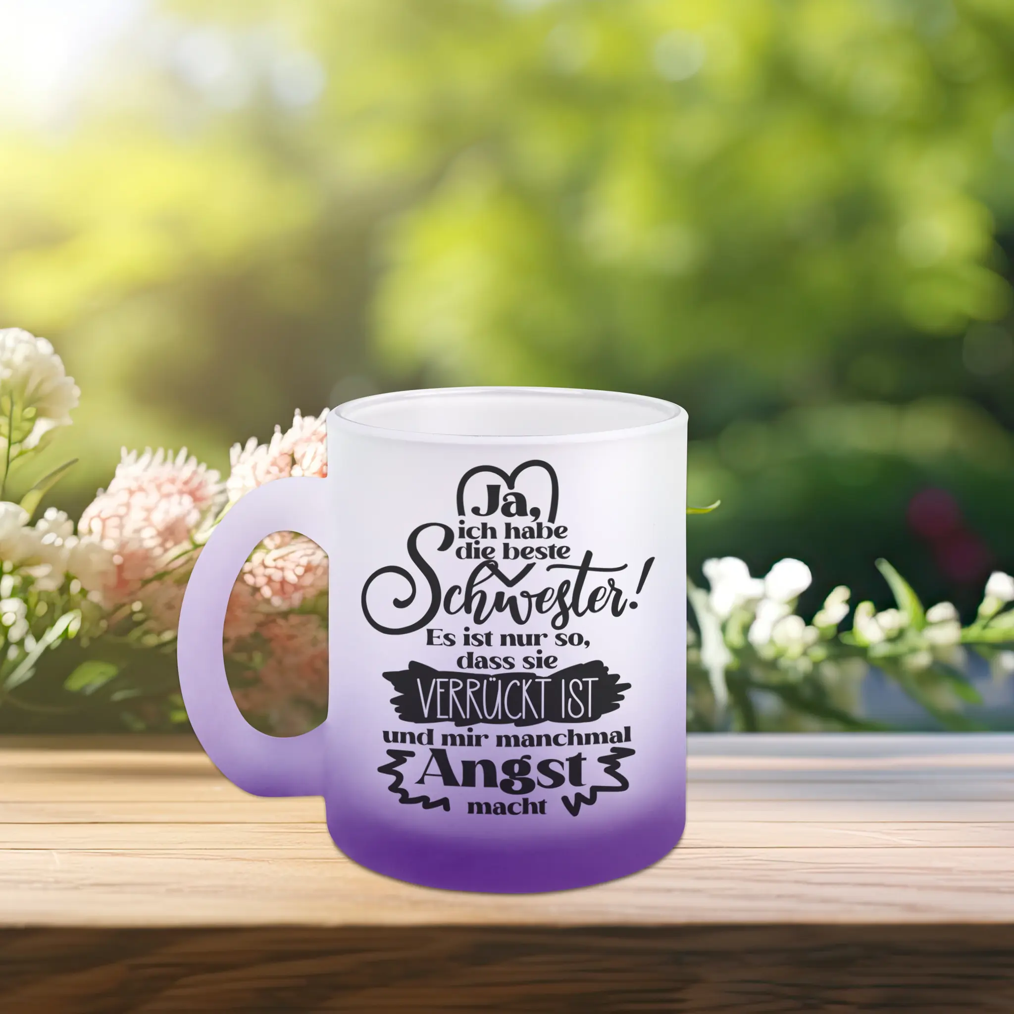 - Motiv / Thema der satinierten Glastasse: Glastasse Schwester