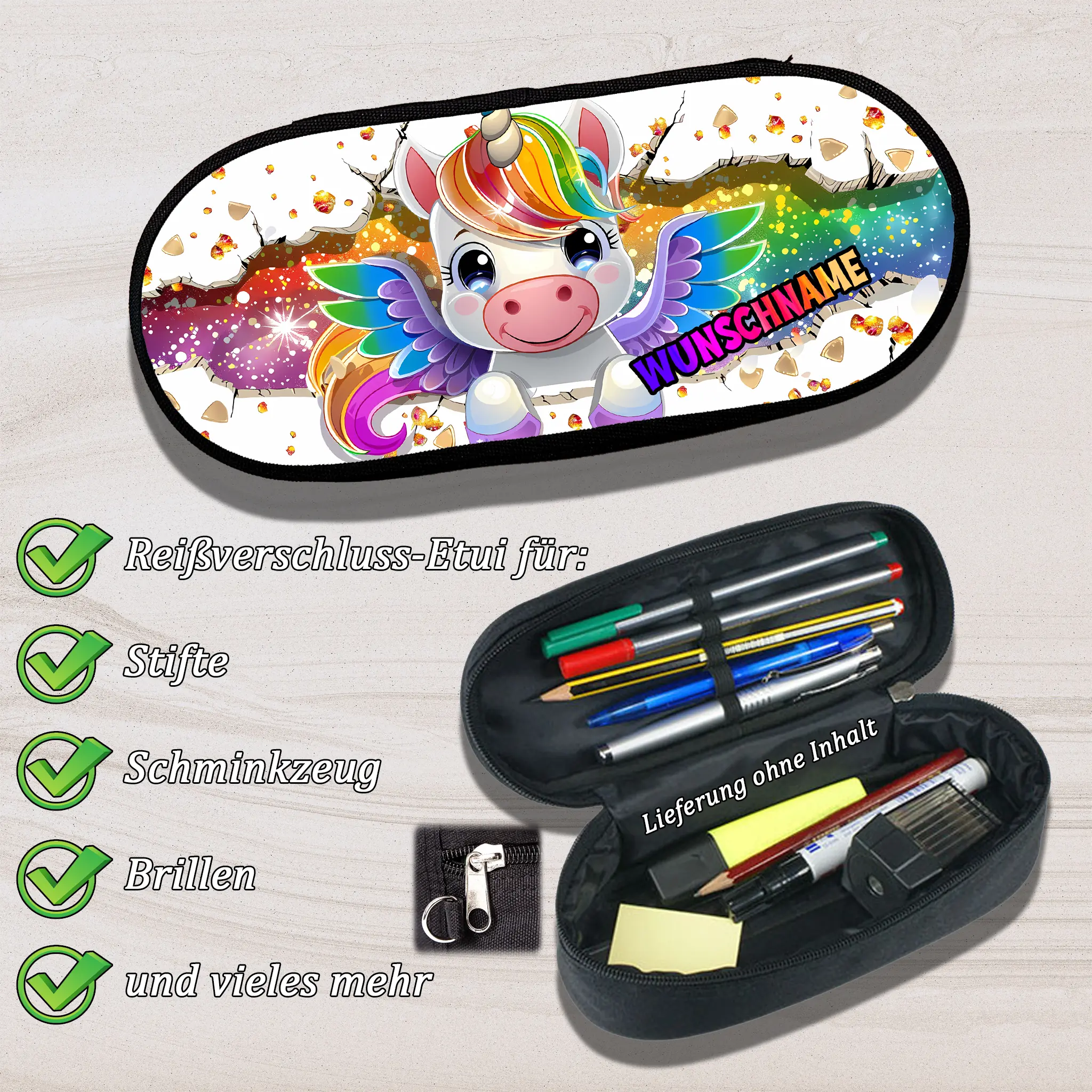- Motiv / Thema des Mäppchens mit praktischem Reißverschluss: Stiftebox Einhorn