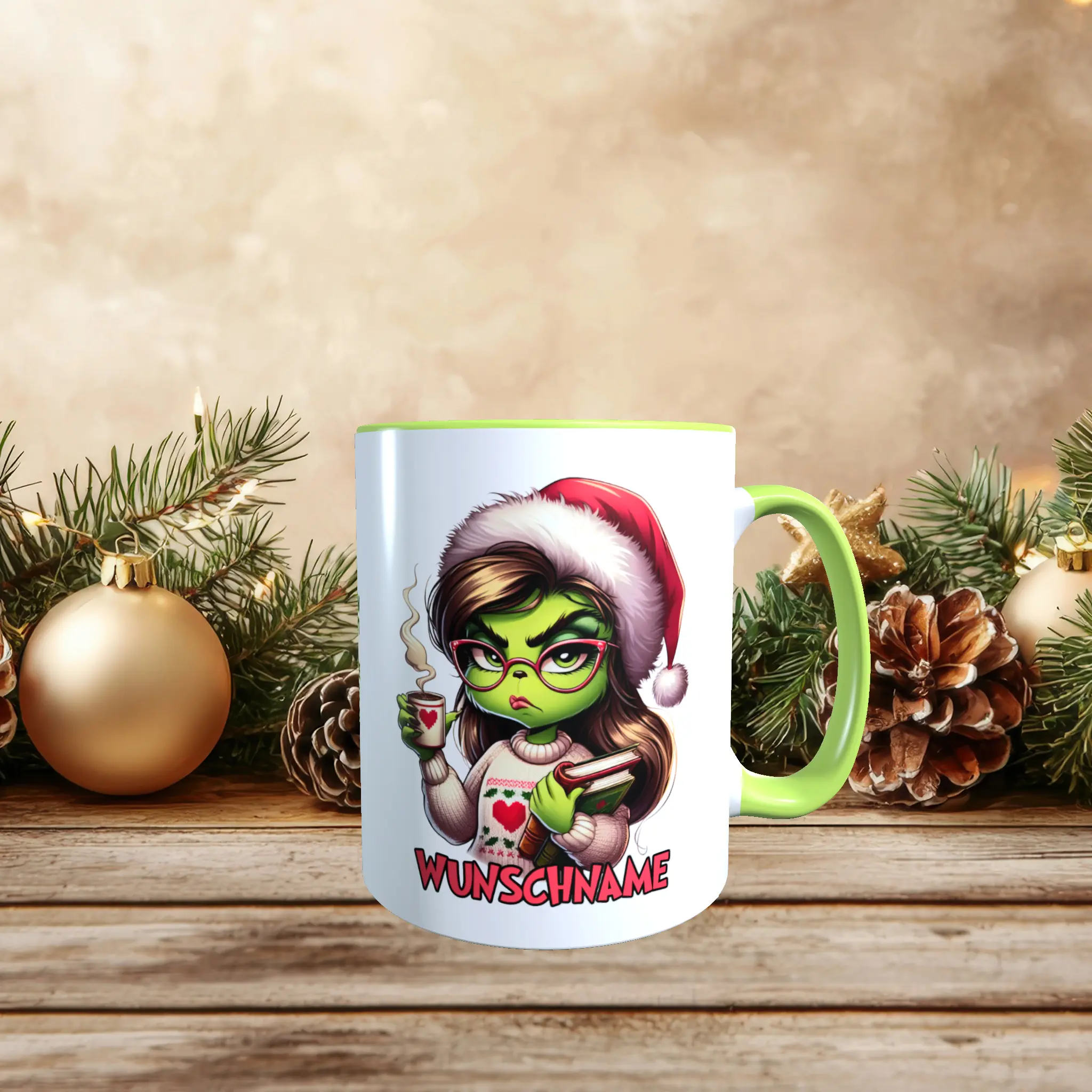- Motiv / Thema der Tasse: Tasse Grinch Frau mit Wunschname