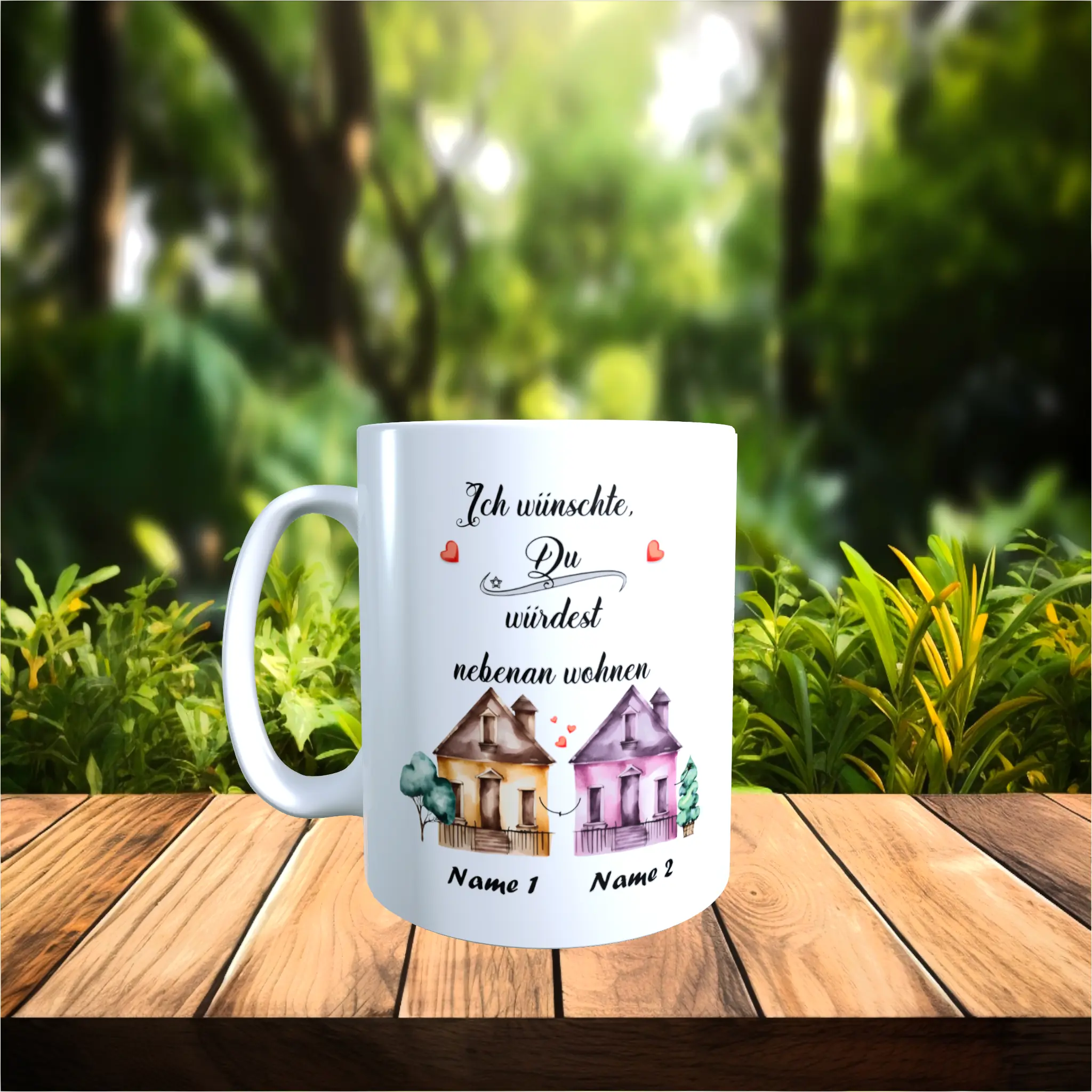 - Die Produktbilder und Videos zur Tasse Ich wünschte Du würdest nebenan wohnen sind mit viel Liebe zum Detail via 3D Software gestaltet um Dir ein bestmögliches Gesamtbild zu vermitteln. Die Hintergründe dienen dem Produkt zur visuellen Unterstützung in realen Situationen und sind leider nicht im Lieferumfang enthalten.